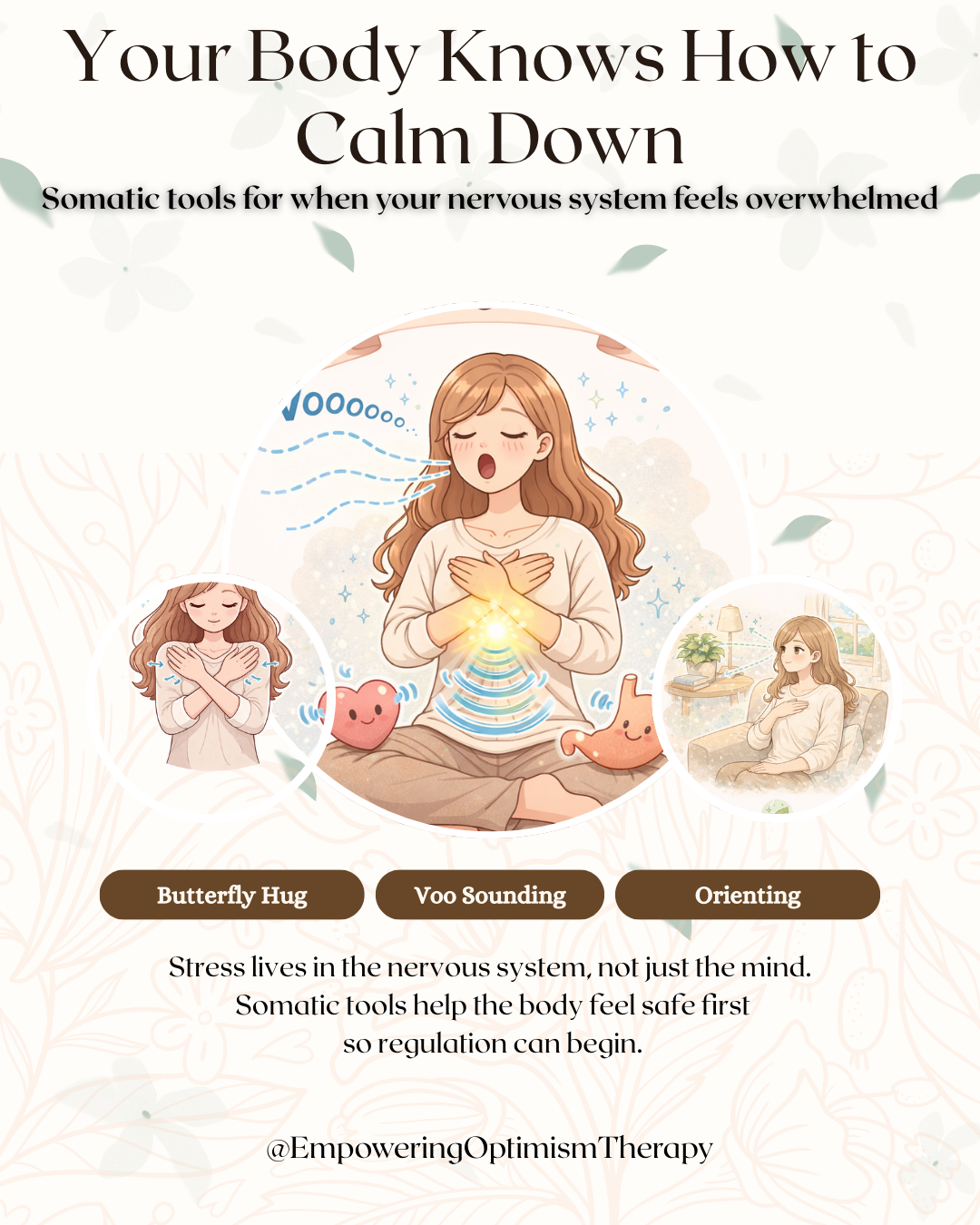 Somatic and mindfulness therapy tools remind us that healing does not have to be complicated or overwhelming. Whether you are learning to calm your nervous system through movement and breath, or creating space between your thoughts and emotions through mindfulness, these practices offer gentle ways to reconnect with yourself in moments of stress. Over time, consistently using these tools can help shift reactions into responses, increase emotional awareness, and build a greater sense of safety within your body. If you find that talk therapy alone has not felt like enough, integrating somatic and mindfulness approaches can create deeper, more lasting change by addressing both the mind and the body together.